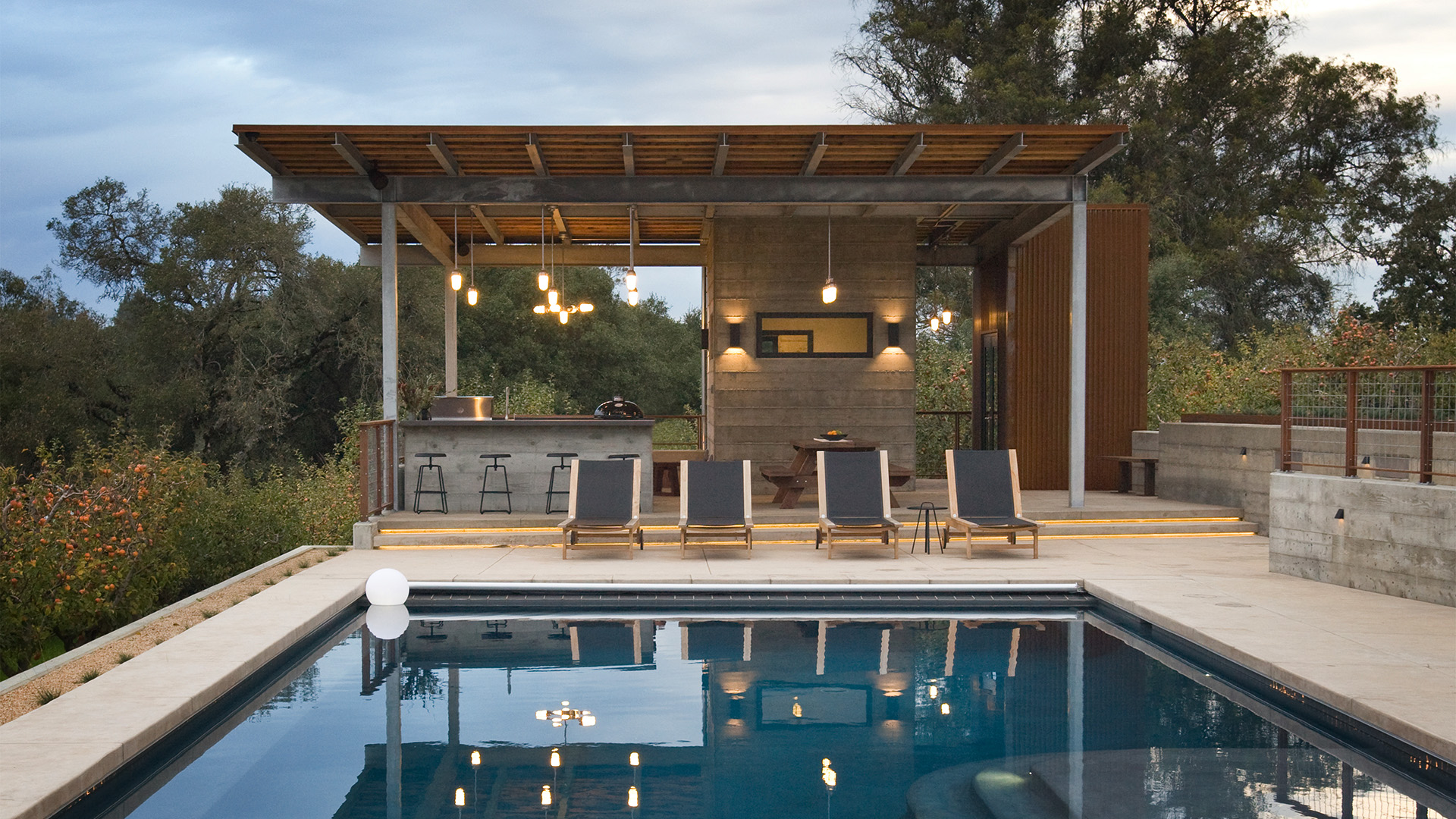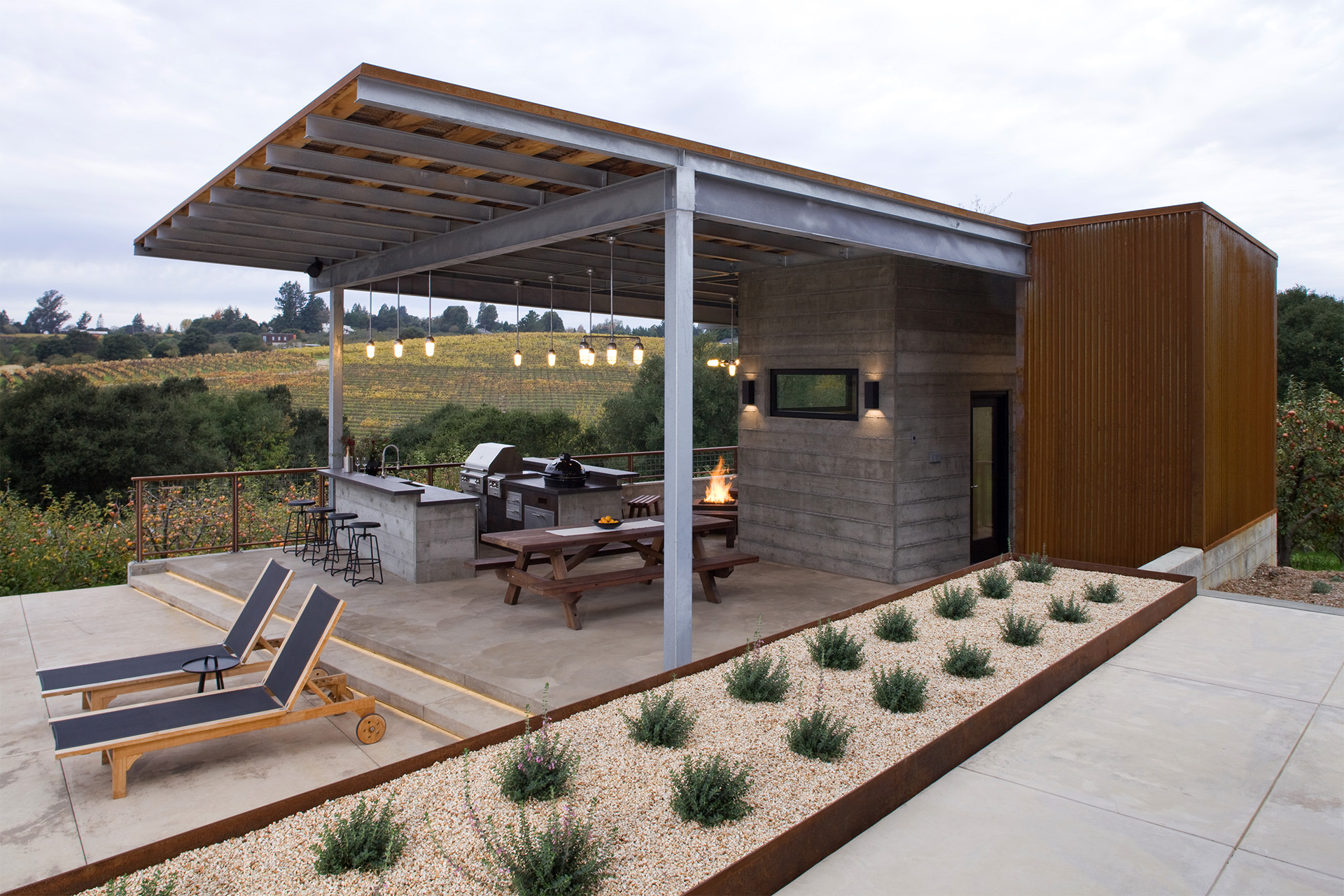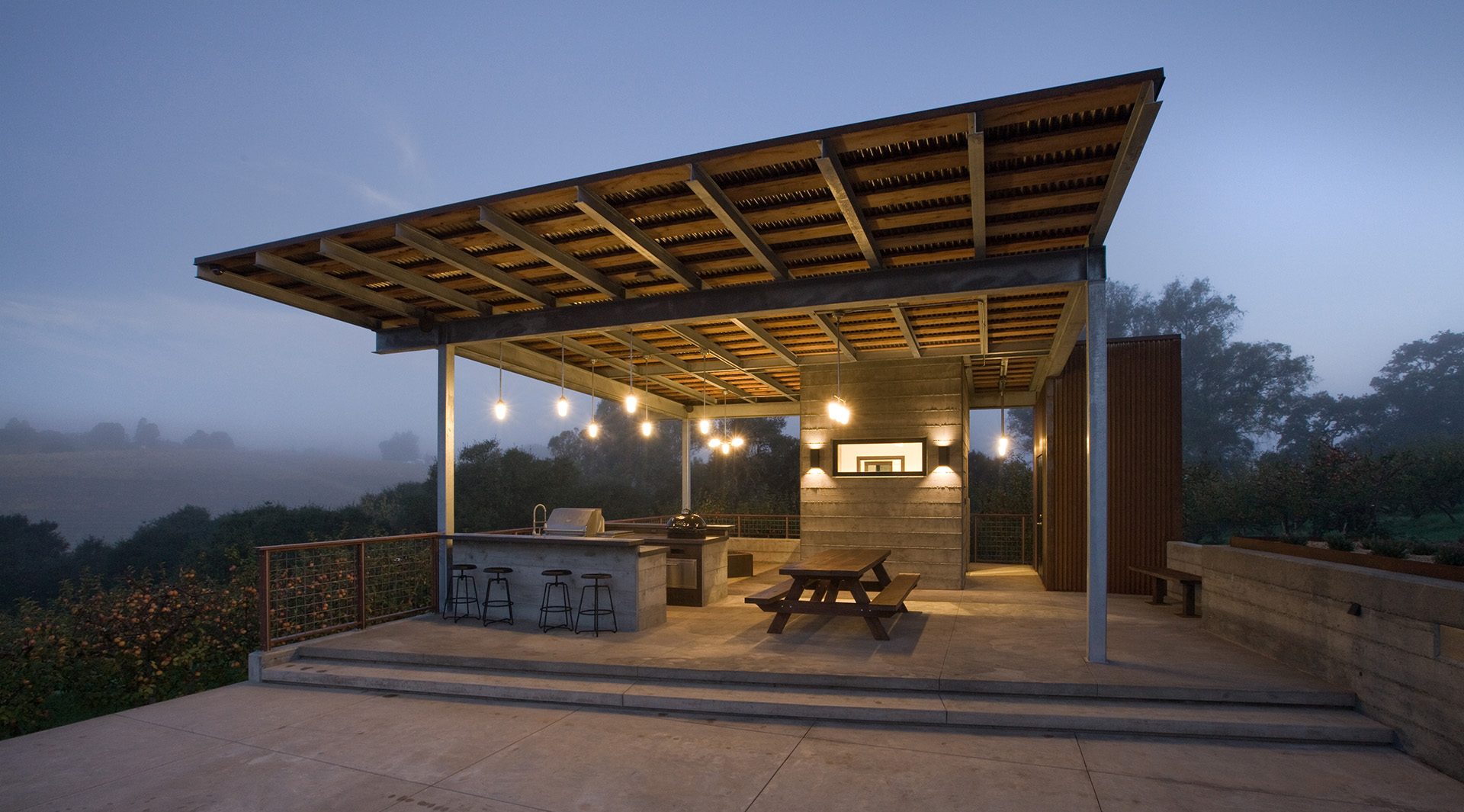 A modern farm in a working apple orchard, splayed to the home, terraced to swim in the blossoms. Pockets of spinach, native grasses on the fringe, encouraging lounge spaces. Dine and stargaze.
